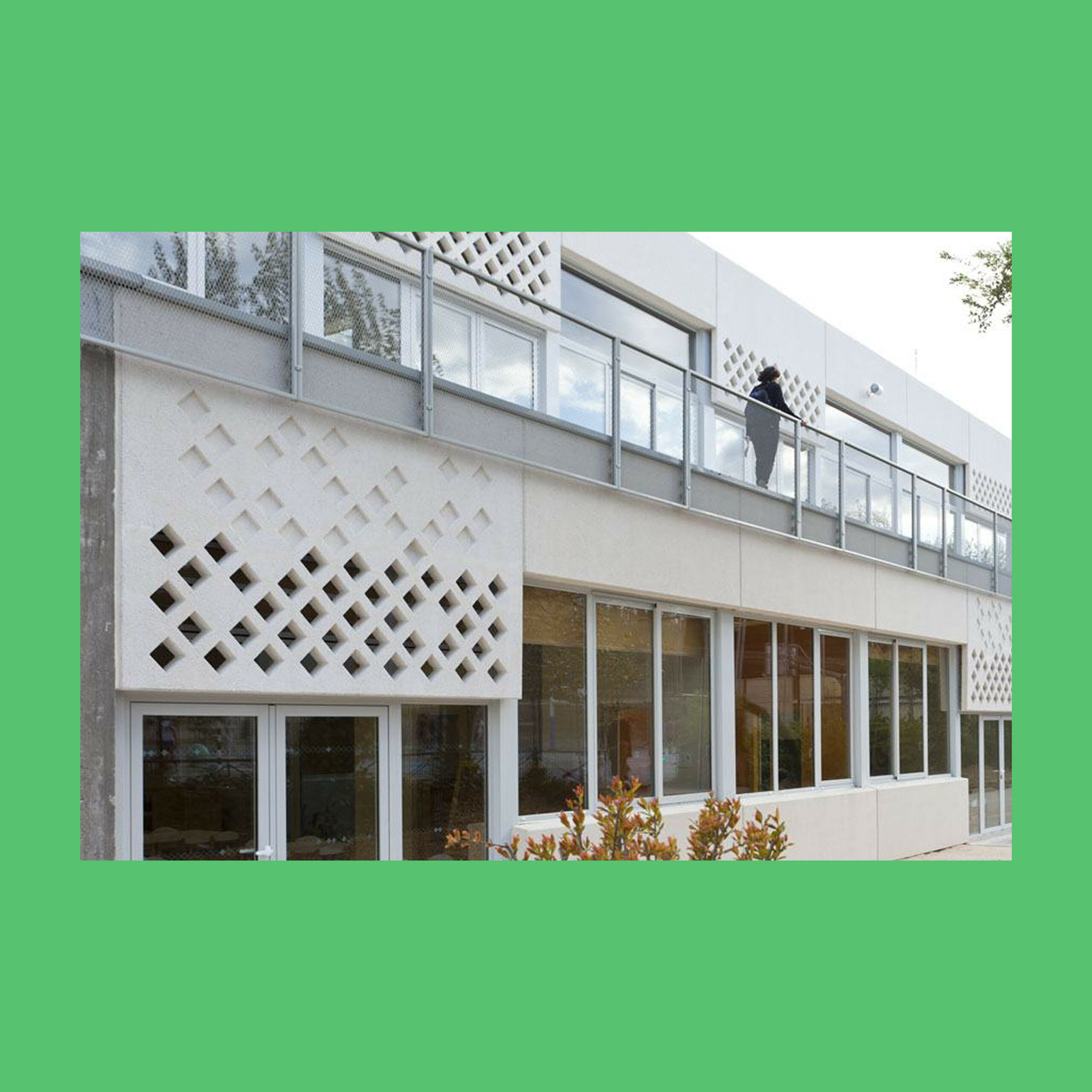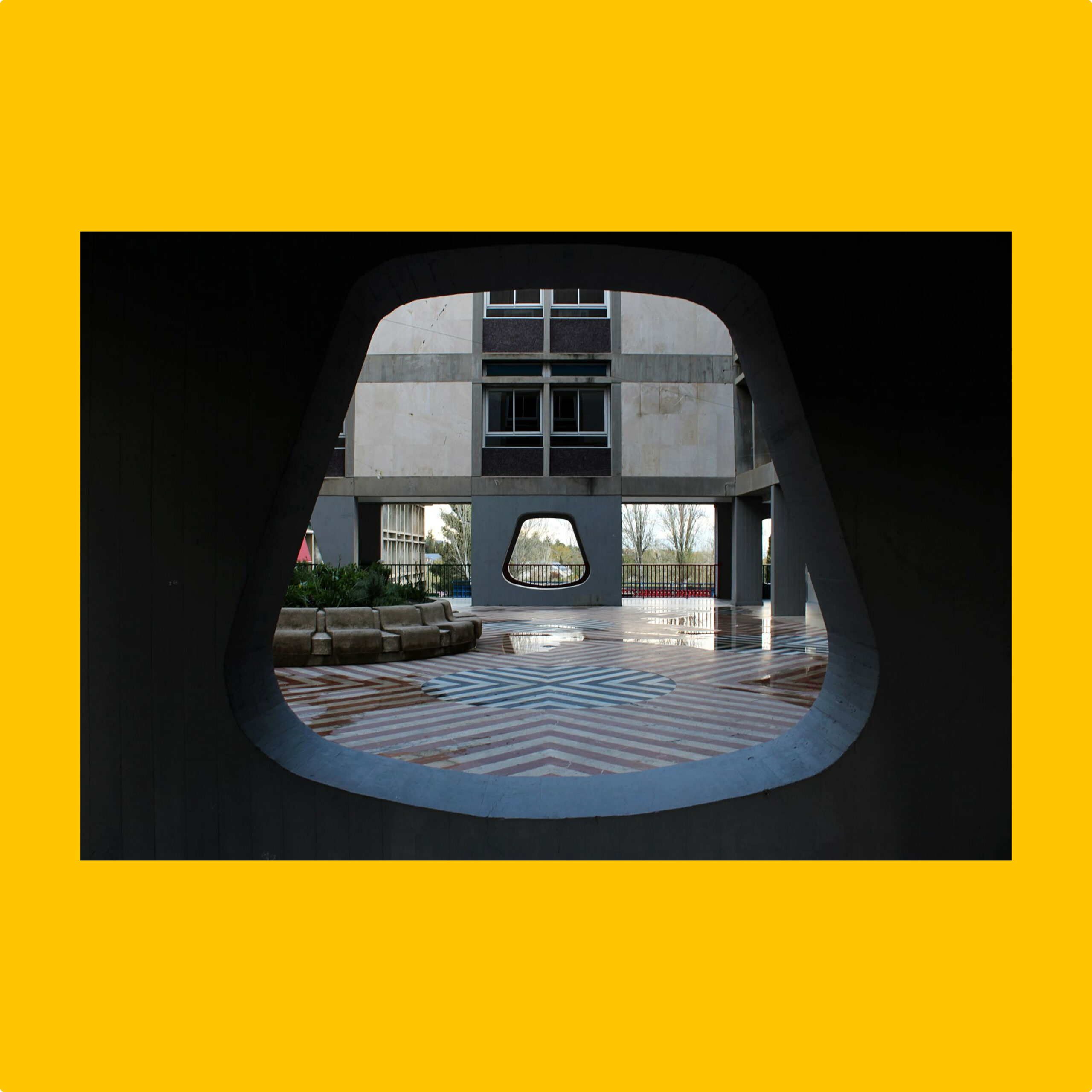 El LFM tiene algo que pocas instituciones pueden reivindicar: una arquitectura propia con personalidad. Las formas geométricas de los edificios brutalistas, especialmente el patio andaluz del Conde de Orgaz, se convirtieron en elementos gráficos del sistema: patrones, contenedores de imagen, texturas que no son decorativas sino biográficas.